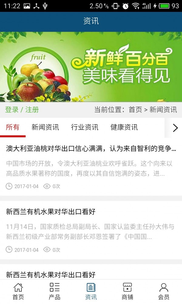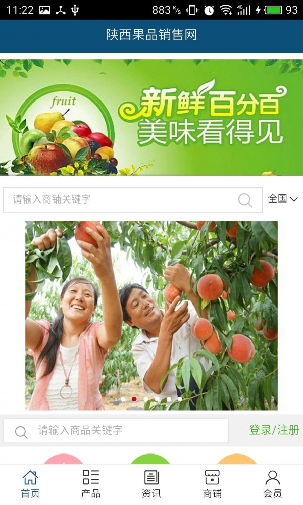 陕西果品销售网客户端不仅具备购物、查询订单、搜索商品、行业资讯和产品评价等常用功能,而且还实现了手机版特有的会员注册陆、广告位、招商开店等功能。
