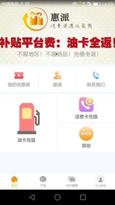 惠派商城app是一款油卡充值软件,用户通过惠派商城app就可以随时随地在线充值油卡,还可以享受返利优惠。