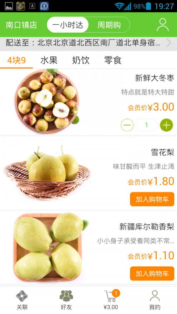 就吃鲜APP是全世界第 yi个具有实至名归意义的社交性购物APP,买家可以通过APP添加自己身边的同事、邻居、室友为好友,自己的订单付款后使用一键喊人,邀请身边的人一起买,各人订单加起来可轻松实现折上折;同事的订单包邮了,我下单后选择关联同事的订单,也有机会跟着包邮,不管