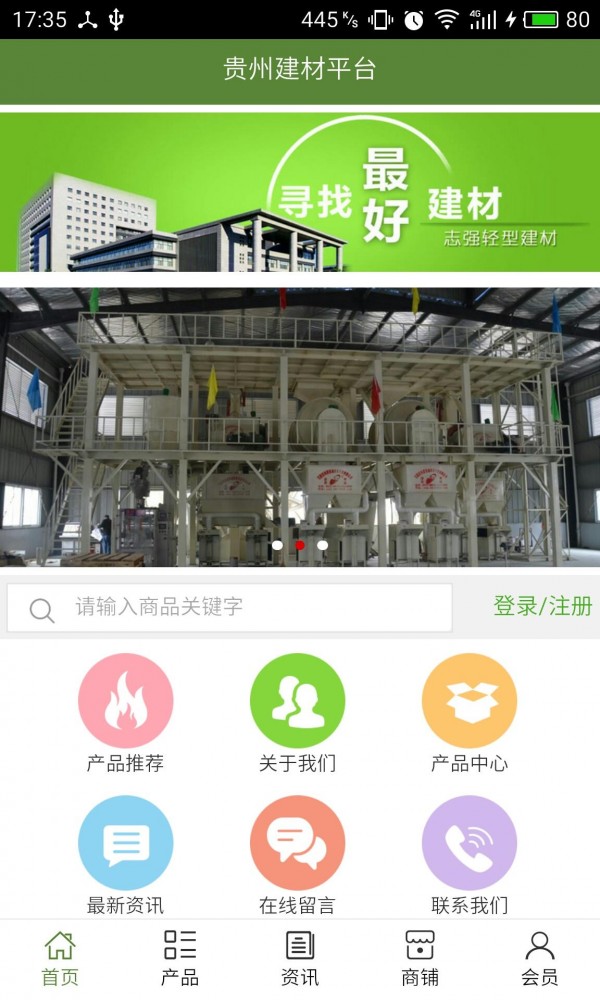 贵州建材平台app不仅具备购物、查询订单、搜索商品、行业资讯和产品评价等常用功能,而且还实现了手机版特有的会员注册陆、广告位、招商开店等功能。
