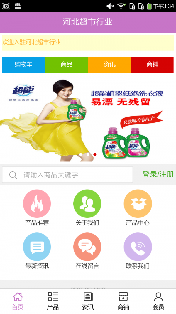 河北超市行业app不仅具备购物、查询订单、搜索商品、行业资讯和产品评价等常用功能,而且还实现了手机版特有的会员注册登录、广告位、招商开店等功能。目标是整合当地品牌商、生产商、经销商,为商家和消费者之间提供一站式解决案。欢迎下载使用!