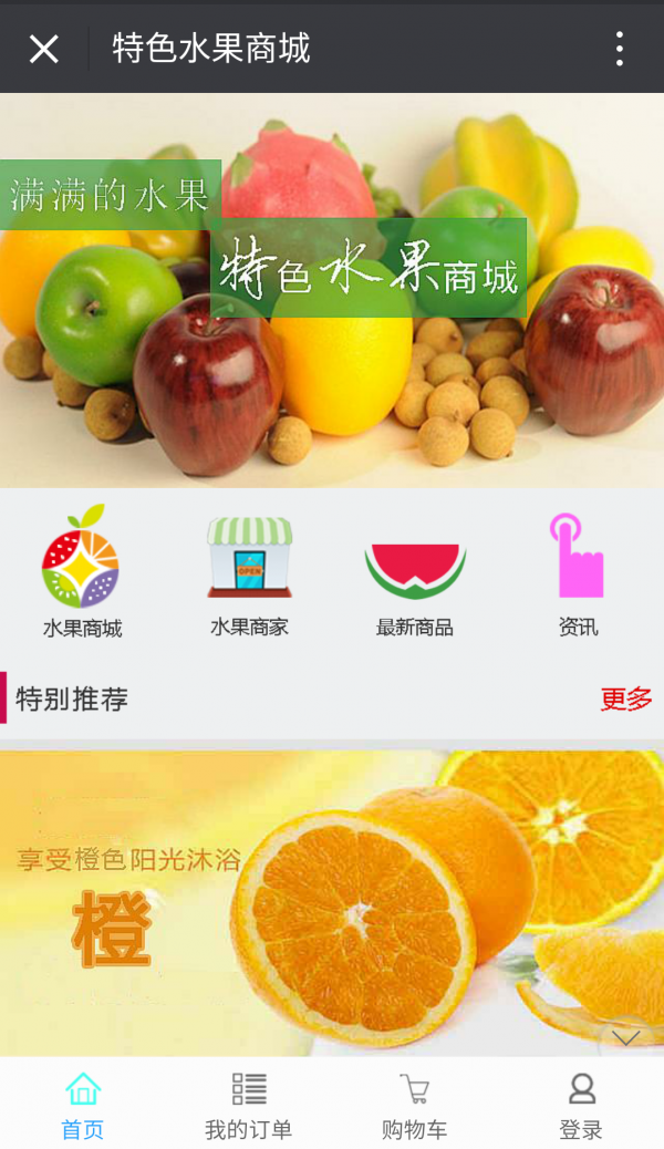 特色水果商城理念:新鲜、健康,精选时鲜水果,方便快捷、品质保障、贴心服务,让你足不出户即可享鲜果!平台内包含水果资讯,产品,商家入驻等综合服务。