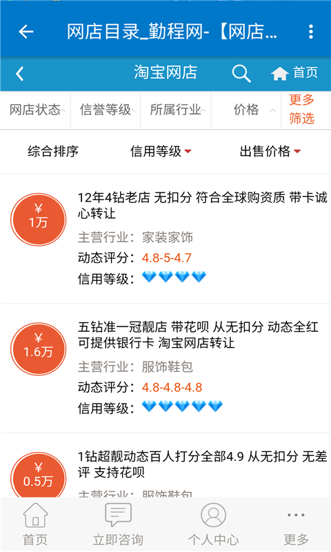 【专业淘宝店铺转让_天猫店铺转让等网店转让交易平台】勤程网华南首家专业网店转让平台,专注淘宝店铺转让、淘宝店铺交易、天猫商城转让、天猫店铺买卖等网店转让服务,拥有上万家优质店铺,总有一个适合你的选择。