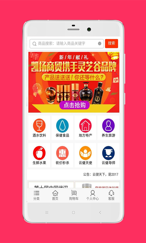 云健天下app是一款电商购物应用,云健天下app为用户打在一个移动购物商城,方便用户轻松选购各类养生健康产品,为用户购物带来便利。