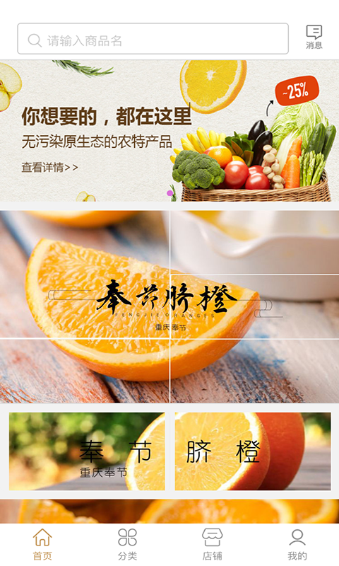 奉节橙app是一款网络购物应用,奉节橙app为用户打造一个脐橙购物平台,让用户可以通过软件轻松采购奉节特色脐橙商品,采购更方便。