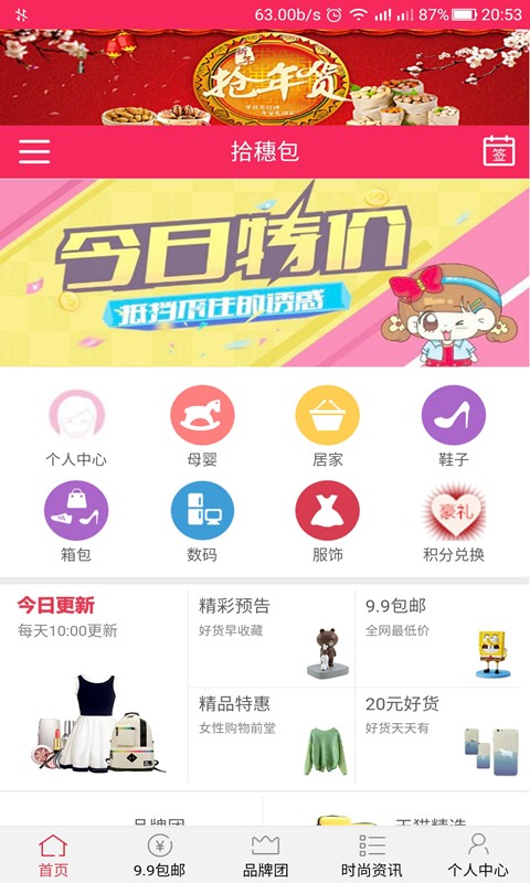 拾穗包是款购物交流软件,定期组织会员活动,推荐优质的特惠信息,为广大会员提供优质的导购服务!让会员在购物的同时更能享受到娱乐的快感!内含穿衣搭配,为会员提供最流行的搭配,做最忠实的设计师。积分兑换豪礼,每日签到都有积分相送,每天不定时更新一些及时的优惠信息!