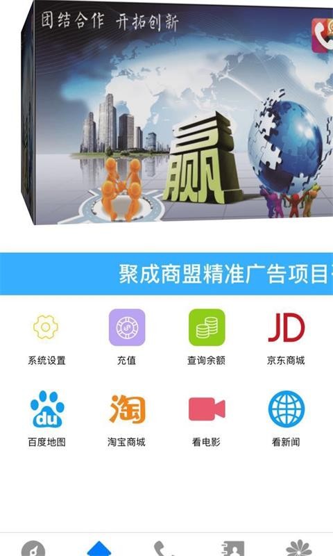 《聚成商盟》APP功能多样化.消费者可以用APP打免费电话 .商家.个人.及企业可以将自己的广告及产品信息以文字.图片的形式植入到APP里,同城广告推送平台可以将商家的产品在商城贩卖展示。公司致力于新产品的开发及推广.推出了 同城广告+商城一体式平台.