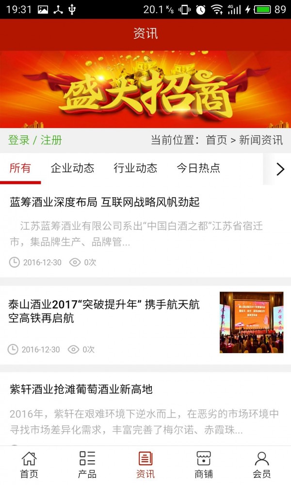 山东酒业行业网app是一款网络购物应用,是个专注于销售山东酒水产品的移动平台。此外通过山东酒业行业网app你不但可便捷的选购酒水,还能及时获取行业资讯和加盟袋里情况。