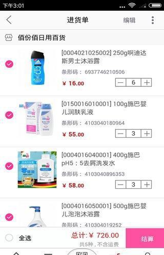 7、扫码点货:扫多种商品条形码,进货数量,一目了然。