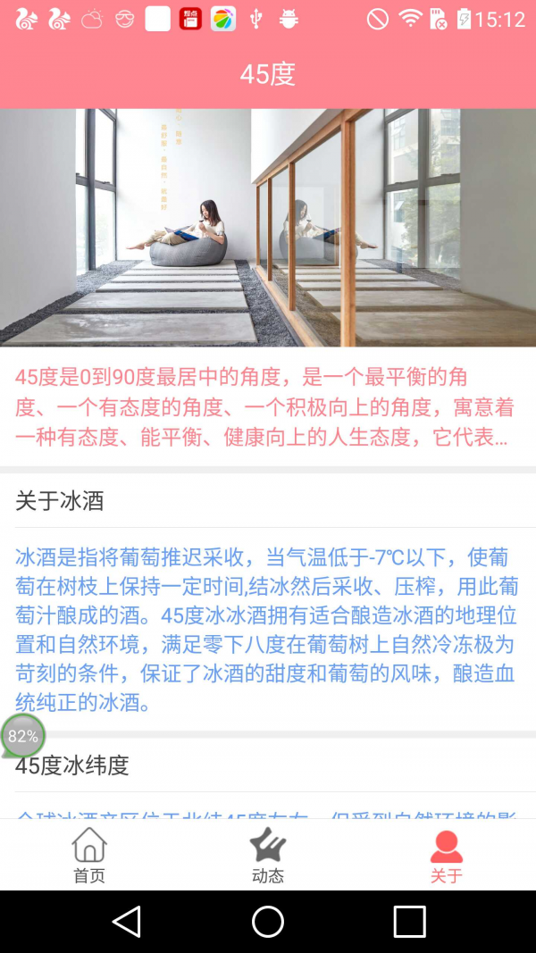 1.该版本主要分三大模块:首页,动态,关于45度。