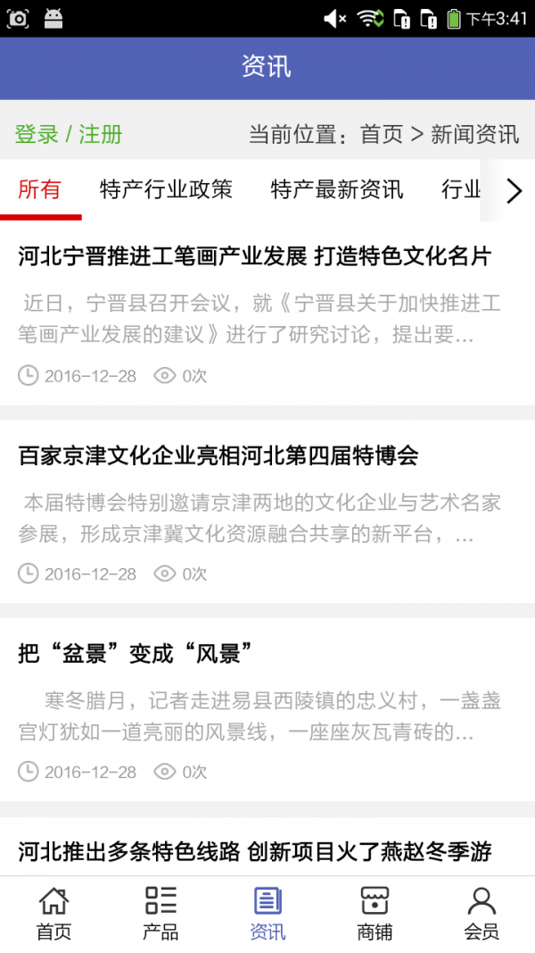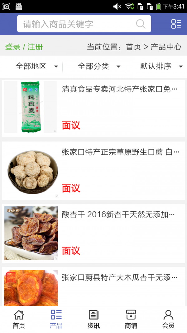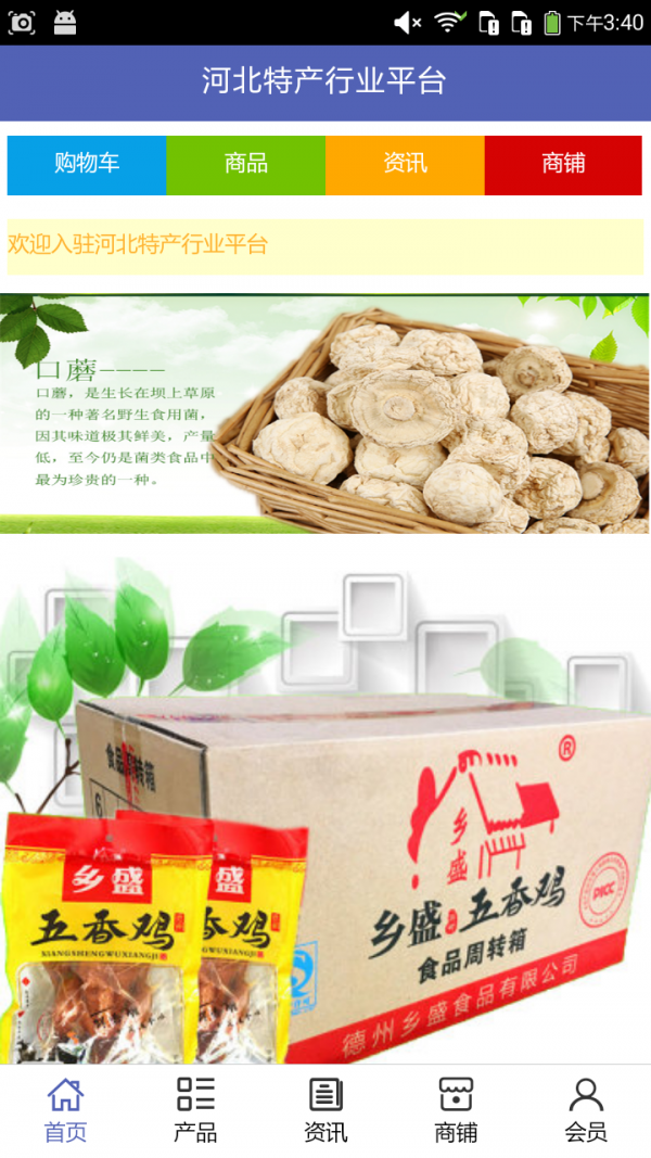 河北特产行业平台app不仅具备购物、查询订单、搜索商品、行业资讯和产品评价等常用功能,而且还实现了手机版特有的会员注册登录、广告位、招商开店等功能。
