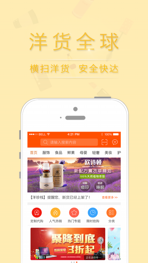 洋珍栈是一款实用的手机全球商城购物应用。进口水果,新鲜奉献,足不出户,当天送达。原装正品,新鲜现货。母婴用品,妈妈买的安心,宝宝吃的放心。