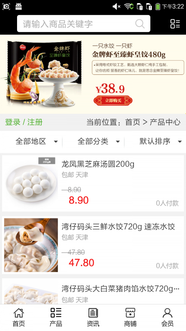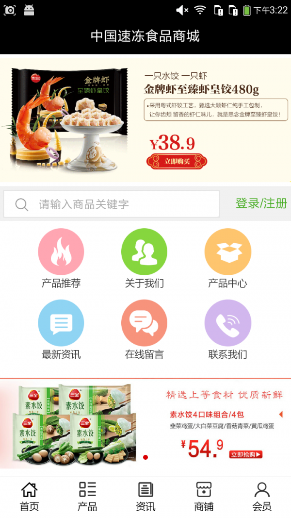 速冻食品商城不仅具备购物、查询订单、搜索商品、行业资讯和产品评价等常用功能,而且还实现了手机版特有的会员注册登录、广告位、招商开店等功能。目标是整合当地品牌商、生产商、经销商,为商家和消费者之间提供一站式解决案。