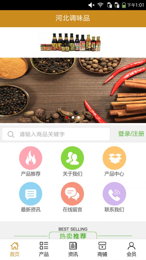 河北调味品APP不仅具备购物、查询订单、搜索商品、行业资讯和产品评价等常用功能,而且还实现了手机版特有的会员注册登录、广告位、招商开店等功能。目标是整合当地品牌商、生产商、经销商,为商家和消费者之间提供一站式解决案。
