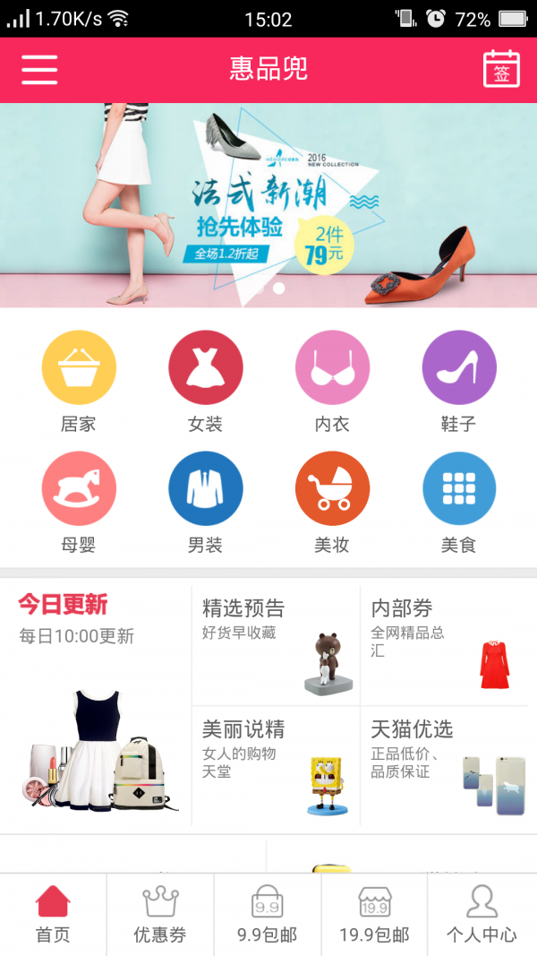 惠品兜优惠app是一家专注网购省钱的折扣精选特卖APP。每日通过汇聚各大电商网站的折扣精品,以更低的价格优惠,严格的样品质检和服务监督,为广大的用户提供实惠的商品和完整的网购服务。