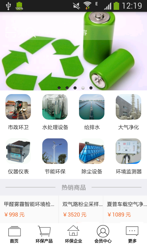 中国环保生态修复app消费者只需打开手机就可以方便快捷的购买到安全优质的环保产品,里面有市政环卫、水处理设备、给排水、大气净化、仪器仪表、节能环保、除尘设备、环保监测器等分类的商品。