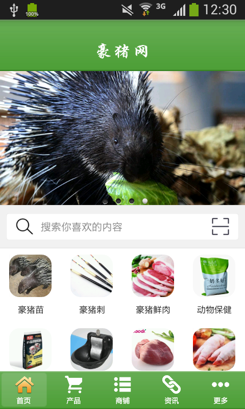 这里有豪猪苗、豪猪刺、豪猪鲜肉、动物保健、饲料、养殖器械、猪心、猪脚等分类,丰富多样的产品,眼花缭乱的选择;