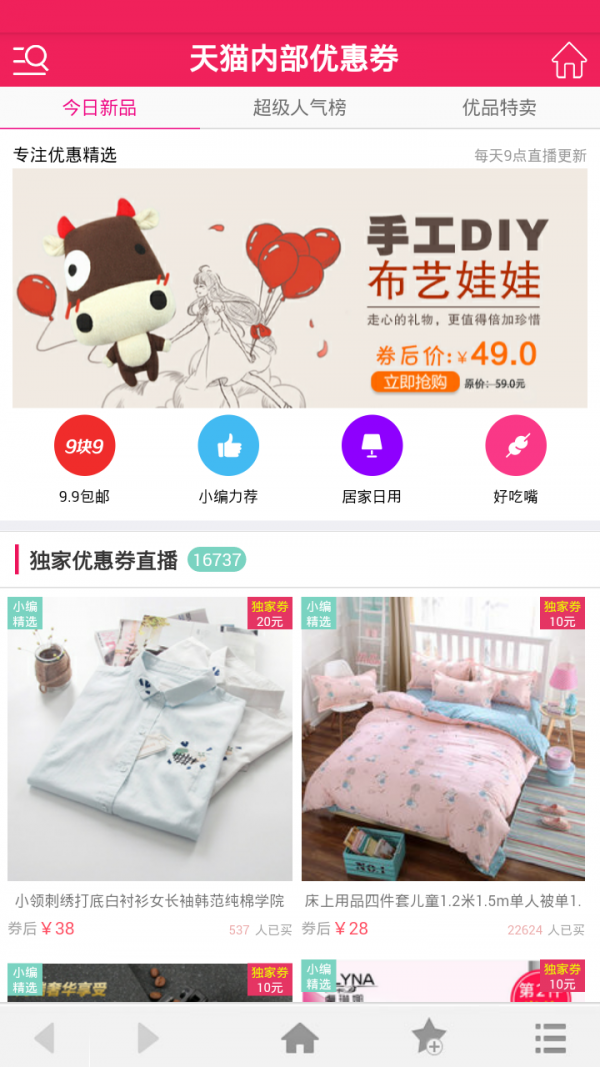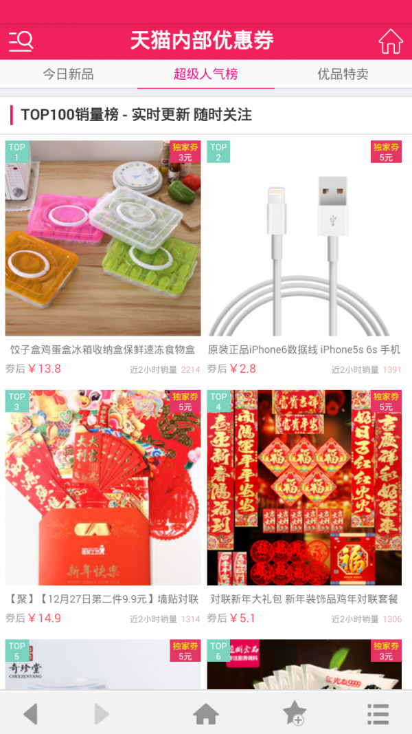全民疯抢:手机必备购物APP,大牌折扣,好货底价购,服饰、家居,生活用品、家电、鞋包……全品类覆盖,用心生活,精明消费,省钱又省心。每天更新上千款淘宝天猫打折优惠商品。