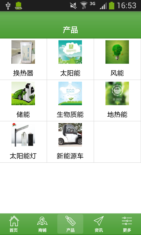 分为换热器、太阳能、风能、储能、生物质能、地热能、太阳能灯、新能源车等新能源产品;