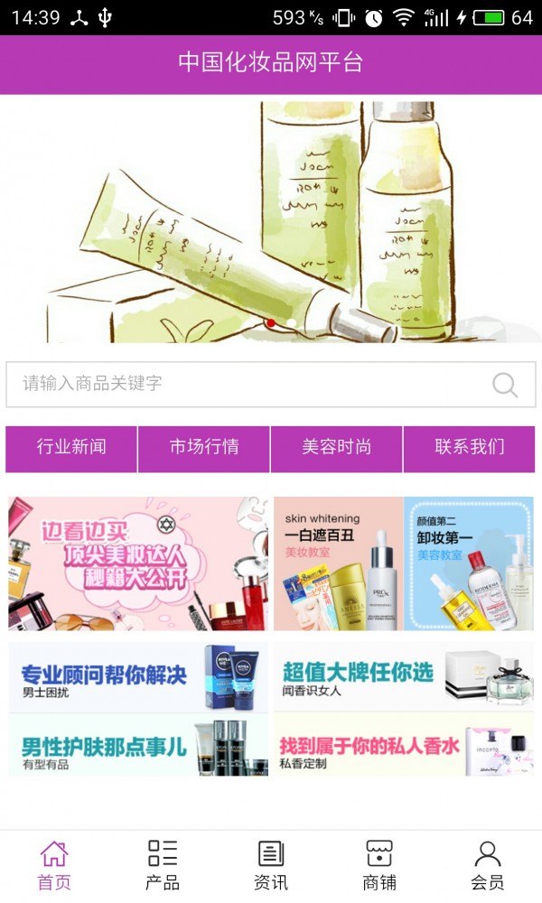化妆品网平台app不仅具备购物、查询订单、搜索商品、行业资讯和产品评价等常用功能,而且还实现了手机版特有的会员注册陆、广告位、招商开店等功能。
