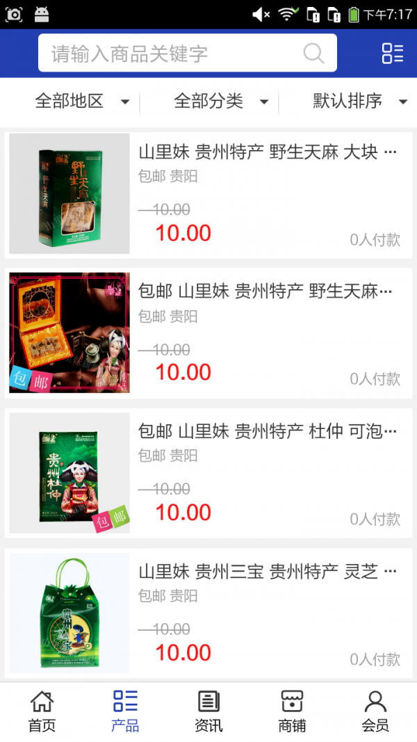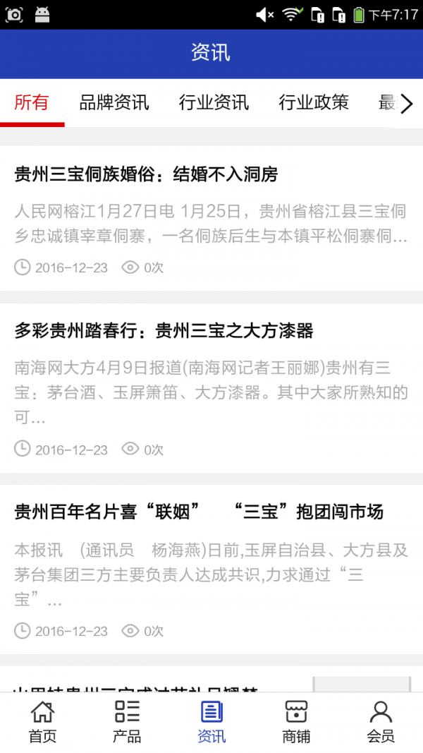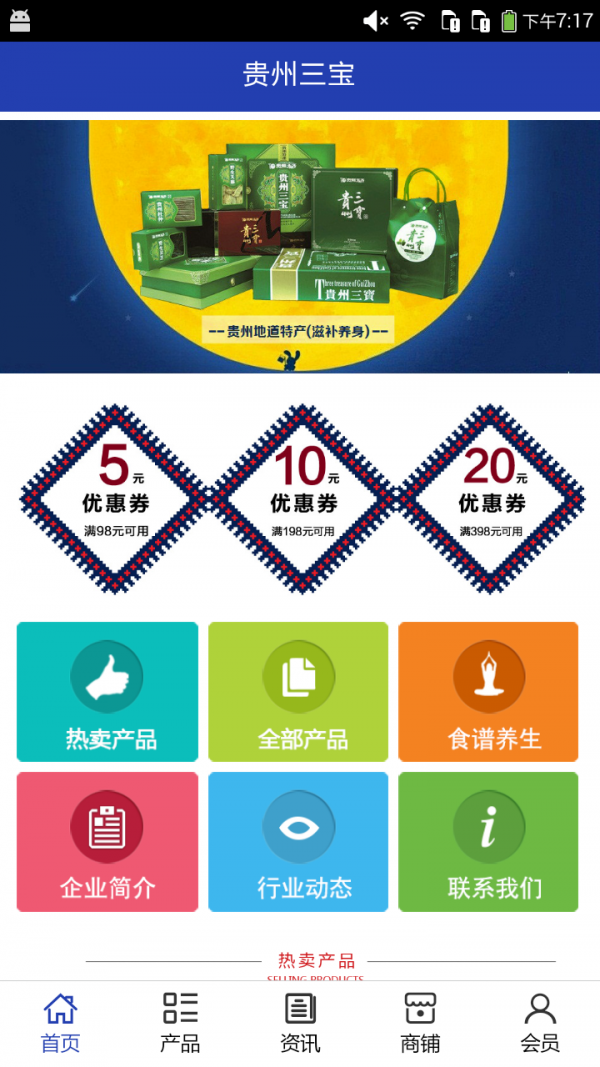 贵州三宝app不仅具备购物、查询订单、搜索商品、行业资讯和产品评价等常用功能,而且还实现了手机版特有的会员注册登录、广告位、招商开店等功能。