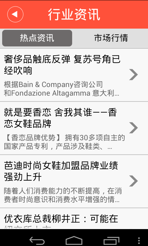 掌上鞋业网是一款集行业资讯、产品中心、采购信息、供应商等为一体的手机应用。全面整合国际鞋业方面的热点资讯、产品分类、品牌中心、人才招聘等相关信息。