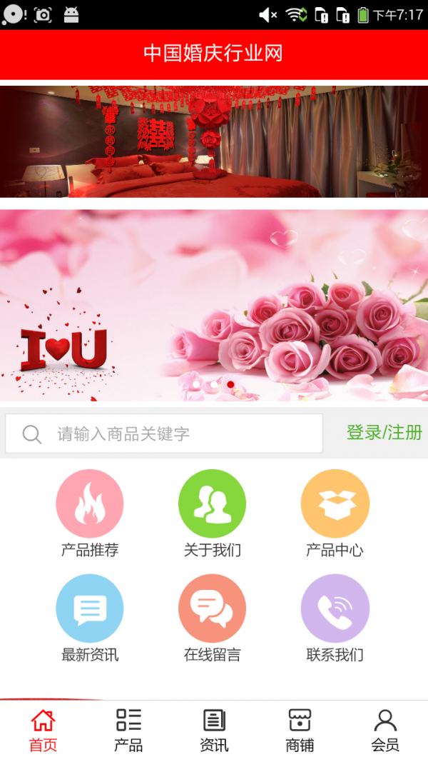 中国婚庆行业网APP不仅具备购物、查询订单、搜索商品、行业资讯和产品评价等常用功能,而且还实现了手机版特有的会员注册登录、广告位、招商开店等功能。目标是整合当地品牌商、生产商、经销商,为商家和消费者之间提供一站式解决案。