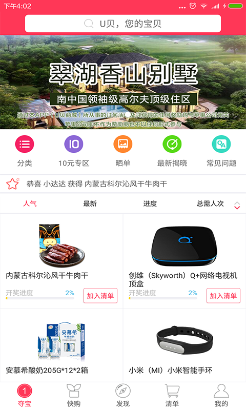 U贝商城app是一款购物类的软件,通过U贝商城app你可以便捷的购买到各种自己需要的产品,同时还提供了夺宝等功能,让购物变得更加有趣。