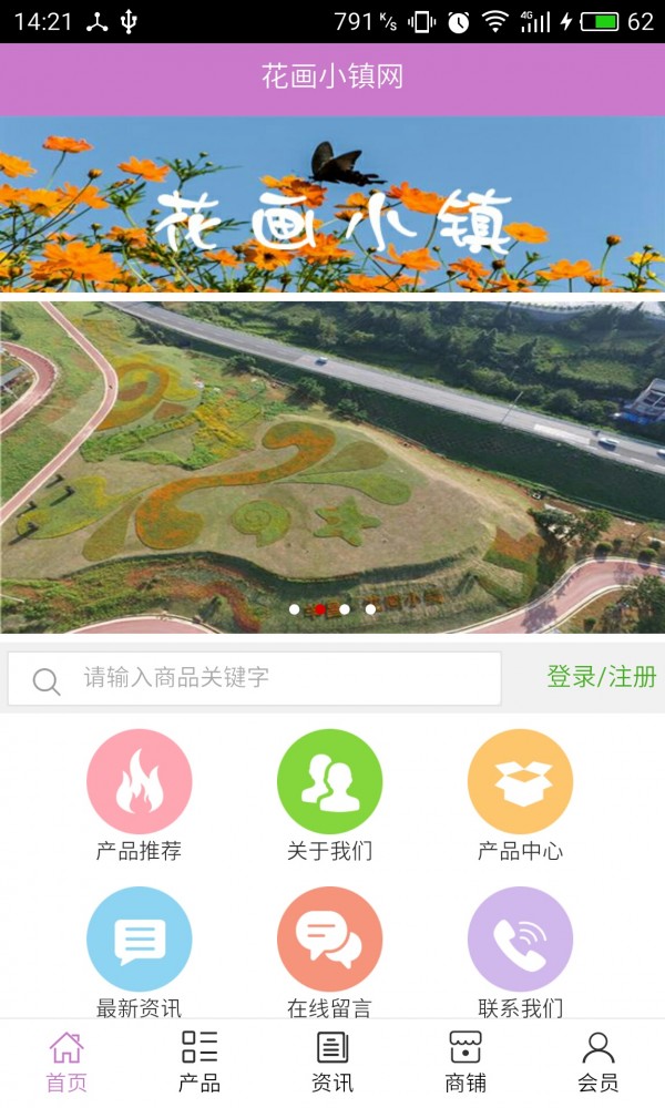 花画小镇网客户端不仅具备购物、查询订单、搜索商品、行业资讯和产品评价等长用功能,而且还实现了手机版特有的会员注册陆、广告位、招商开店等功能。目标是整合当地品牌商、生产商、经销商,为商家和消费者之间提供一站式解决方案。