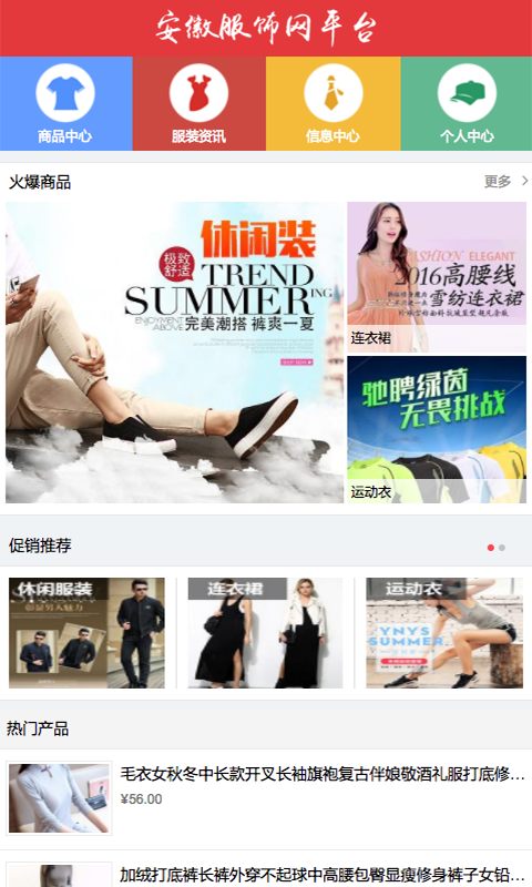 安徽服饰网平台是一款关于服饰方面的移动手机APP客户端,它包含了行业资讯、时尚资讯、展会信息、企业会员、供应信息、休闲装、连衣裙、运动衣等商品信息和资讯,快来下载安徽服饰网平台APP体验吧!