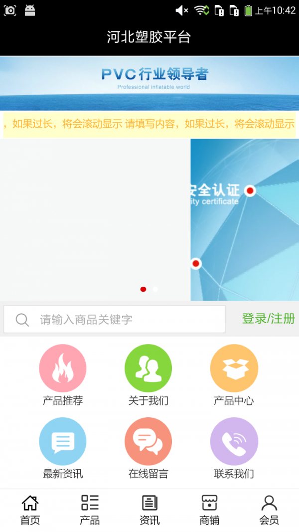 河北塑胶平台app不仅具备购物、查询订单、搜索商品、行业资讯和产品评价等常用功能,而且还实现了手机版特有的会员注册登录、广告位、招商开店等功能。
