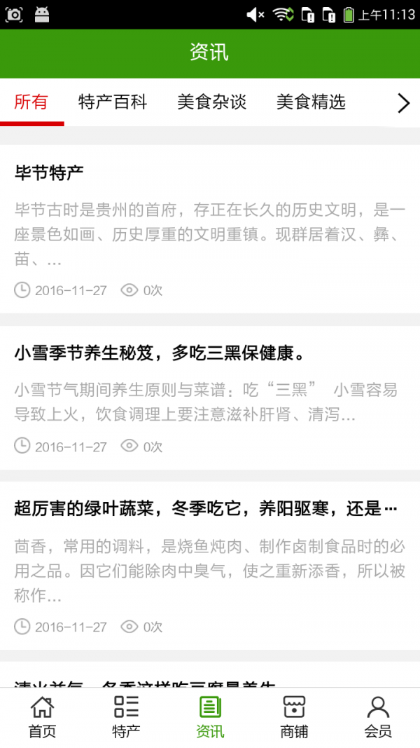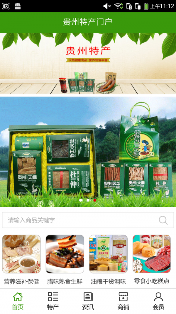 贵州特产门户app不仅具备购物、查询订单、搜索商品、行业资讯和产品评价等常用功能,而且还实现了手机版特有的会员注册登录、广告位、招商开店等功能。