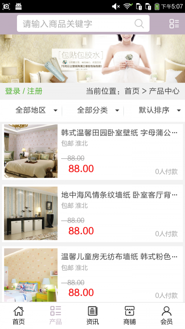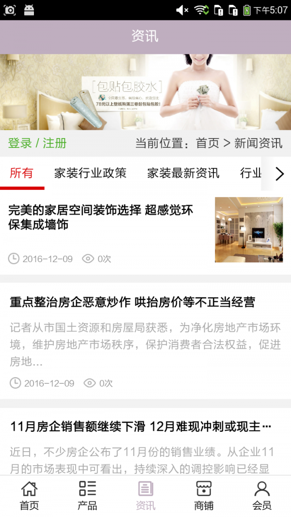 安徽环保家装app不仅具备购物、查询订单、搜索商品、行业资讯和产品评价等常用功能,而且还实现了手机版特有的会员注册登录、广告位、招商开店等功能。