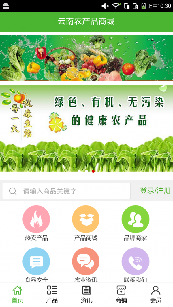 云南农产品商城app是一款网络购物应用,云南农产品商城app为广大用户提供绿色、有机、无污染的健康农产品,方便用户随时随地在线购买,享受便捷的健康生活。