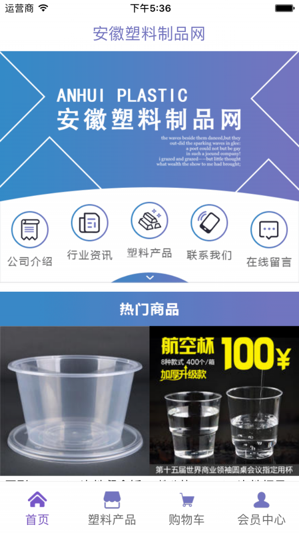 安徽塑料制品网APP提供:产品展示,新闻评论,联系方式,会员注册,商家入驻,个人中心等内容,是一个发布供求信息,推广商家服务,建立网上商铺的综合平台。