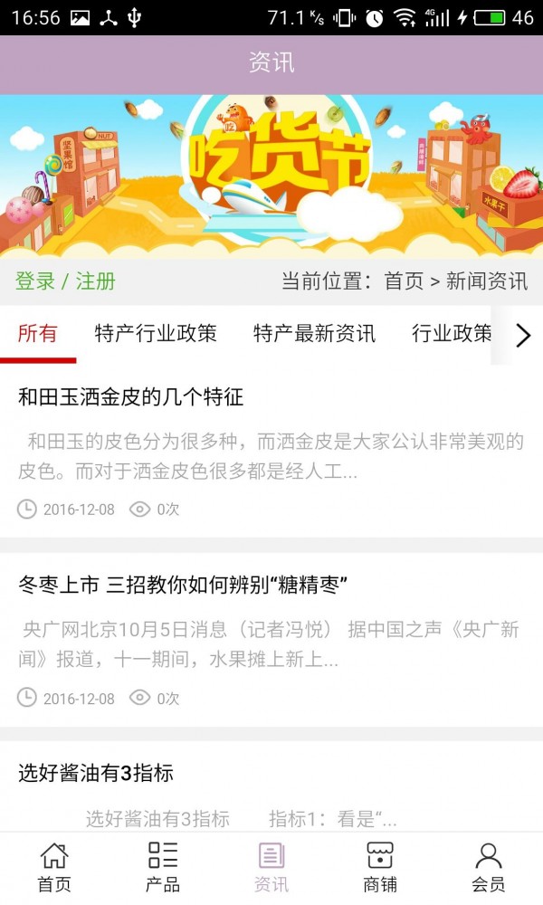 名优特产网平台app不仅具备购物、查询订单、搜索商品、行业资讯和产品评价等长用功能,而且还实现了手机版特有的会员注册陆、广告位、招商开店等功能。