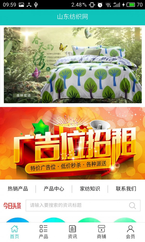山东纺织网客户端不仅具备购物、查询订单、搜索商品、行业资讯和产品评价等长用功能,而且还实现了手机版特有的会员注册陆、广告位、招商开店等功能。目标是整合当地品牌商、生产商、经销商,为商家和消费者之间提供一站式解决方案。