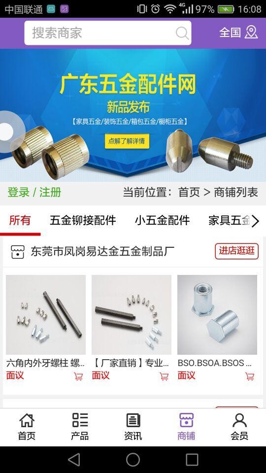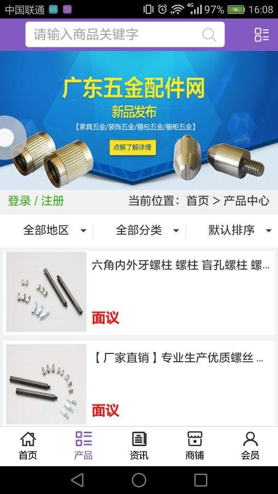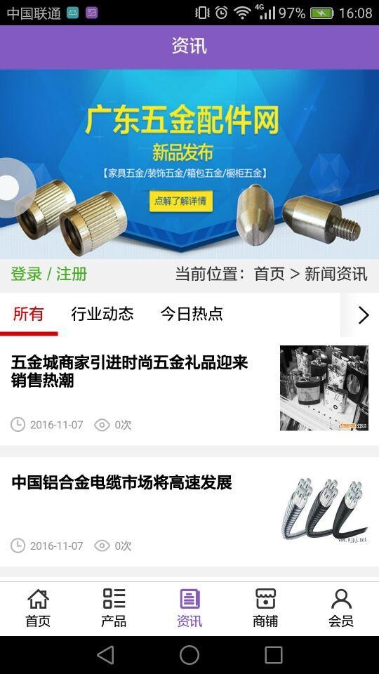广东五金配件网app不仅具备购物、查询订单、搜索商品、行业资讯和产品评价等常用功能,而且还实现了手机版特有的会员注册登陆、广告位、招商开 店等功能。