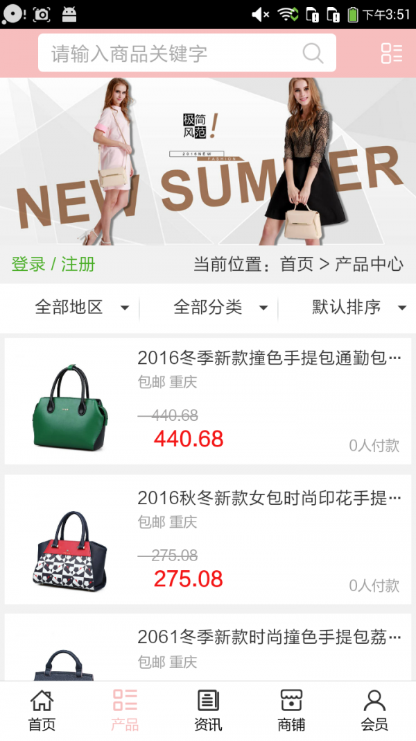 重庆皮具商城APP不仅具备购物、查询订单、搜索商品、行业资讯和产品评价等常用功能,而且还实现了手机版特有的会员注册登录、广告位、招商开店等功能。目标是整合当地品牌商、生产商、经销商,为商家和消费者之间提供一站式解决案。