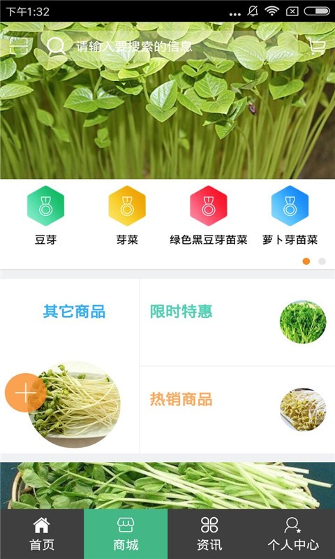 芽苗菜网app是一款网络购物应用,芽苗菜网app为用户打造一个芽苗菜购物平台,用户可以通过软件了解更多芽苗菜购物信息,为用户生活带来方便。