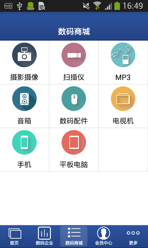 【分类清晰】产品分为摄影摄像、扫描仪、mp3、音箱、数码配件、电视机、手机、平板电脑等等;