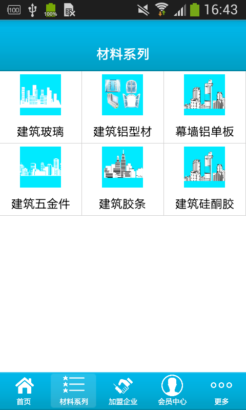 产品齐全:有建筑玻璃、建筑铝型材、幕墙铝单板、建筑五金件、建筑胶条建筑硅酮胶等等,分类清晰明了