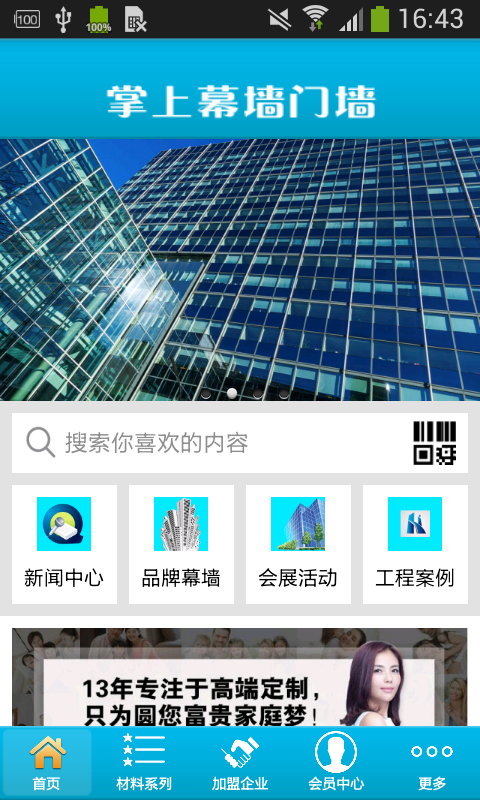掌上幕墙门窗app是一款网络购物应用,是基于移动互联网平台而研发的专门销售幕墙门窗产品的大型在线商城。掌上幕墙门窗app中的产品齐全,且质量高,旨在让用户们足不出户就能买到需要的产品。