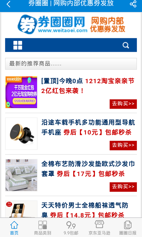 券圈圈app是新兴的、中立的网购推荐平台,编辑每天收工甄选商品,在控制网购风险基础上向网友推荐高性价比商品。