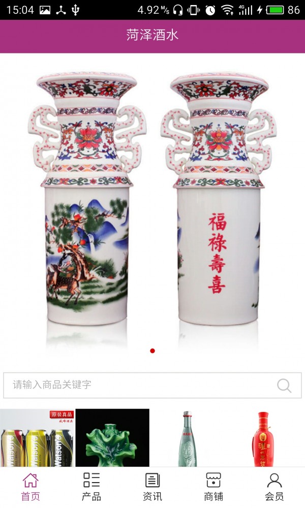 菏泽酒水app是一款服务软件,应用包含了公司所有信息,更方便的服务好每一个人,该客户端不仅具备购物、查询订单、搜索商品、行业资讯和产品评价等常用功能,而且还实现了手机版特有的会员注册登录、广告位、招商开店等功能。