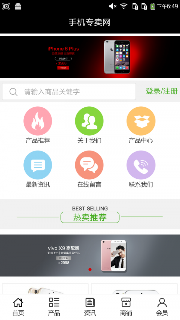 手机专卖网app不仅具备购物、查询订单、搜索商品、行业资讯和产品评价等常用功能,而且还实现了手机版特有的会员注册登录、广告位、招商开店等功能。目标是整合当地品牌商、生产商、经销商,为商家和消费者之间提供一站式解决案。欢迎下载使用!