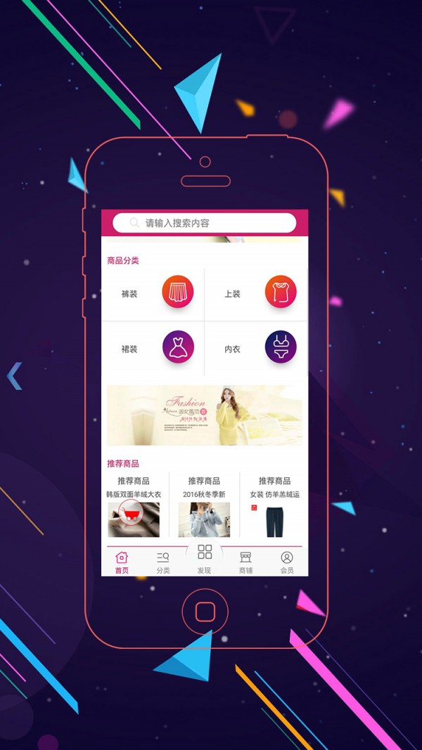 女装平台app不仅具备购物、查询订单、搜索商品、行业资讯和产品评价等长用功能,而且还实现了手机版特有的会员注册登陆、广告位、招商开店等功能。目标是整合当地品牌商、生产商、经销商,为商家和消费者之间提供一站式解决方案。欢迎下载使用!