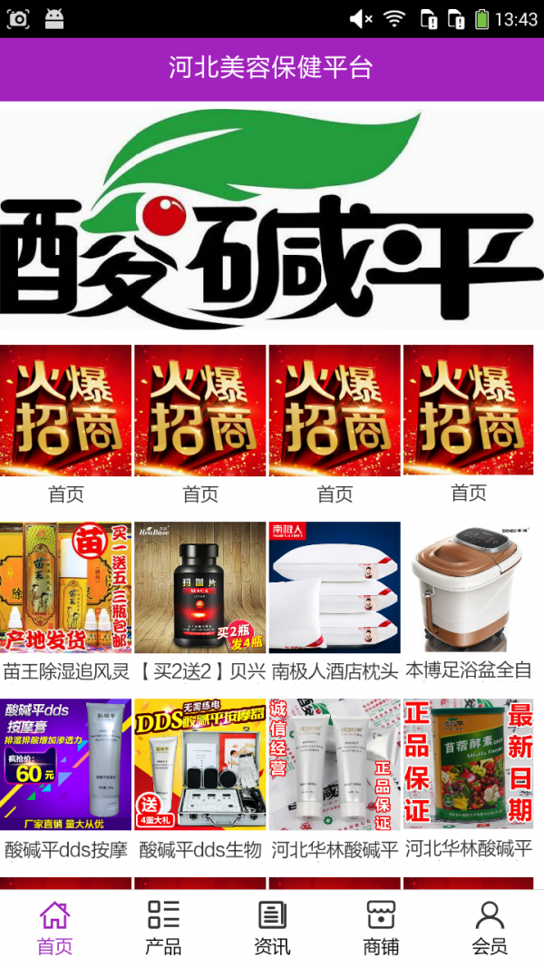 河北美容保健平台app不仅具备购物、查询订单、搜索商品、行业资讯和产品评价等常用功能,而且还实现了手机版特有的会员注册登录、广告位、招商开店等功能。