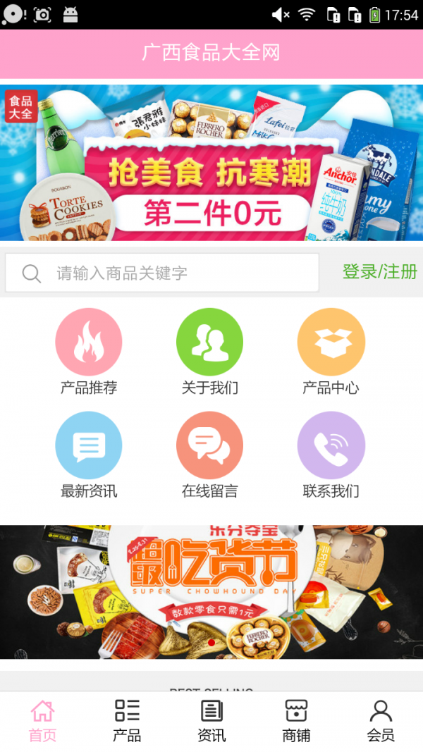 广西食品大全网app不仅具备购物、查询订单、搜索商品、行业资讯和产品评价等常用功能,而且还实现了手机版特有的会员注册登录、广告位、招商开店等功能。目标是整合当地品牌商、生产商、经销商,为商家和消费者之间提供一站式解决案。欢迎下载使用!