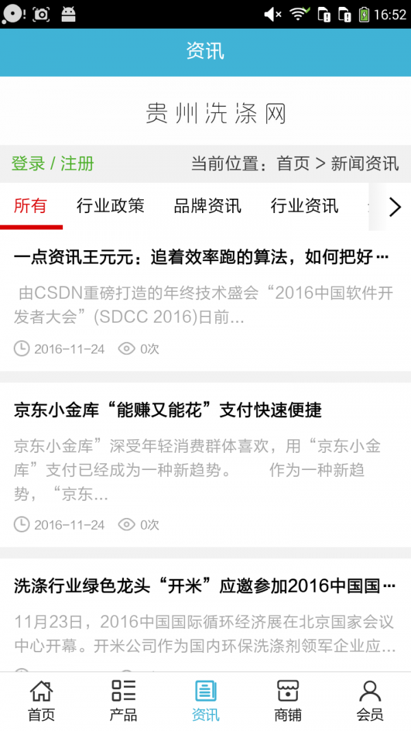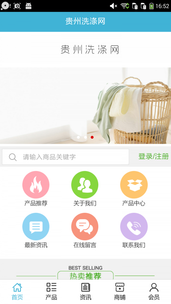 贵州洗涤网客户端不仅具备购物、查询订单、搜索商品、行业资讯和产品评价等常用功能,而且还实现了手机版特有的会员注册登录、广告位、招商开店等功能。目标是整合当地品牌商、生产商、经销商,为商家和消费者之间提供一站式解决案。